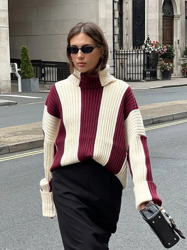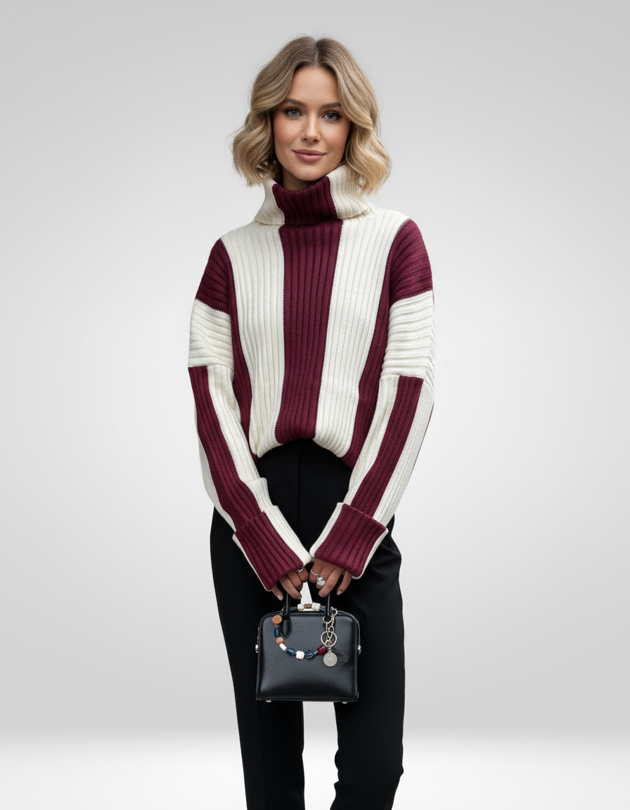 Dames Coltrui – Gebreide Trui met Verticale Strepen
