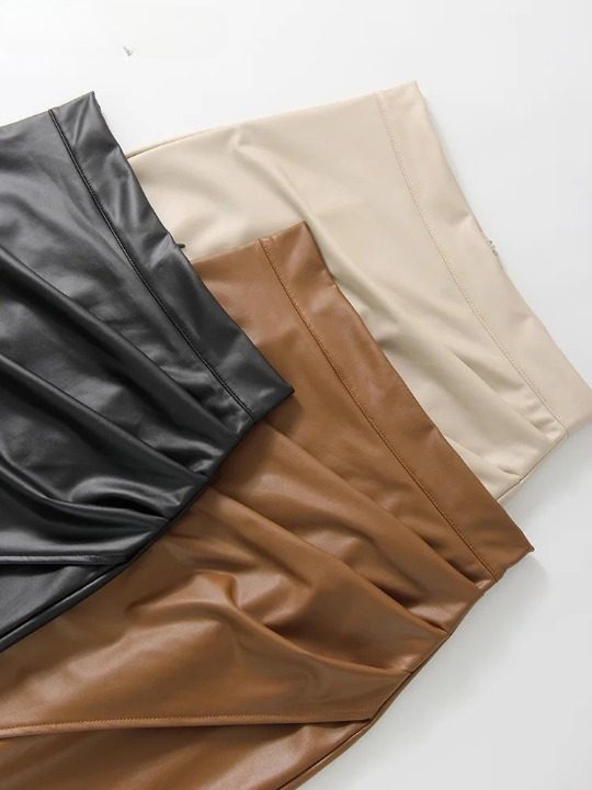 Dames midi-rok met hoge taille in zwart faux leather. Deze stijlvolle en edgy rok combineert een moderne uitstraling met een vleugje verleiding. Vervaardigd uit hoogwaardig kunstleer, waardoor de rok een luxueuze look en duurzame kwaliteit biedt. Het hoge tailleontwerp en de elegante split zorgen voor een flatterend silhouet en extra bewegingsvrijheid – ideaal voor zowel casual als formele outfits.
